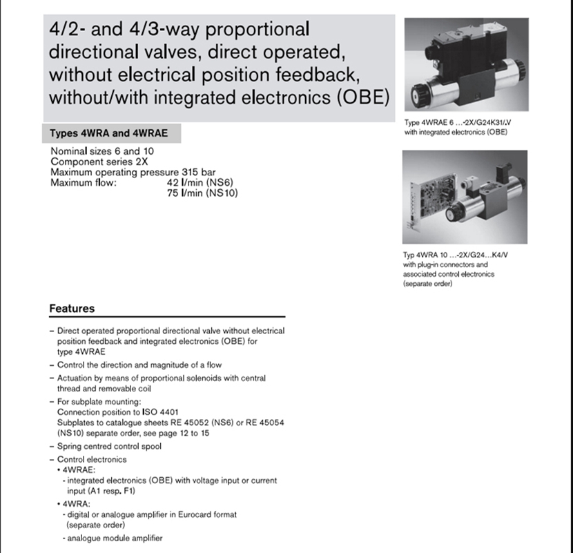Description:Directional valves,direct operated,open loop, with OBE 4WRAE